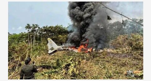 Il+velivolo,+un+C130+Hèrcules,+è+precipitato+poco+dopo+il+decollo+da+Puerto+Leguizamo,+vicino+al+confine+meridionale+con+Ecuador+e+Perù,+spargendo+rottami+in+fiamme+nella+giungla.+Una+fonte+militare+ha+dichiarato+che+58+soldati+sono+morti,+insieme+a+sei+membri+dell'aeronautica+e+due+agenti+di+polizia.Ignote+le+cause+dello+schianto.+