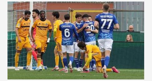 Importantissimo successo del Lecce che al Via del Mare batte 2-1 la Cremonese. Inizio bloccato, poi al 22' il Lecce passa: corner di Gallo, perfetto stacco aereo di Pierotti che anticipa Audero. I pugliesi raddoppiano su rigore. Mani di Bianchetti su tiro di Stulic: dal dischetto lo stesso attaccante serbo fa 2-0 (38'). Nella ripresa l'ingresso di Djuric sveglia i grigiorossi che al 47' riaprono il match: sponda di testa di Djuric per l'inserimento di Bonazzoli, 2-1.Nel finale annullato al Var il pari dei grigiorossi (tocco di braccio).
