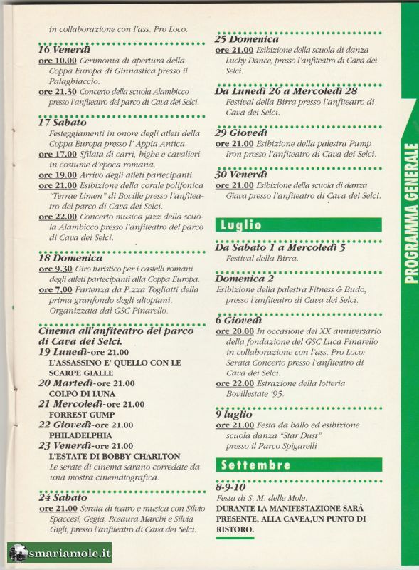 Basti pensare che, nel 1995, durante il periodo del Comune di Boville si svolse qui la Coppa Europa di Ginnastica Artistica, con la partecipazione, tra le altre, dell’indimenticabile Jury Chechi.