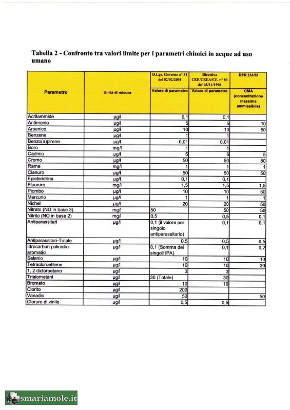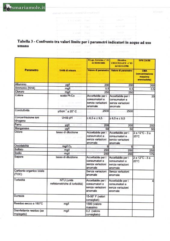 Comunque, fermo restando l’attendibilità delle precauzioni sulla salute stabilite dalla citata normativa, si ritiene opportuno precisare che oltre agli inquinanti menzionati, la qualità dell’acqua si giudica anche in funzione della quantità degli elementi analizzati riportati in etichetta e dal confronto dei valori degli stessi con i limiti stabiliti dal D. Lgs. n. 31 del 2/02/2001 e della Direttiva CEE/CEEA/CE n° 83 del 3 /11/1998 .