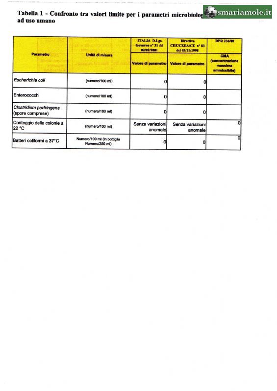 Ovviamente, però, la quasi totalità delle acque minerali non presentano caratteristiche qualitative fuori norma, anche se è sempre opportuno verificarne la regolarità, attraverso il riscontro ed il confronto dei valori limite (Vedi Allegate Tabelle 1, 2, e 3) con quelli riportati in Etichetta, ivi compresa la data dell’ultima analisi (molto frequentemente risalente ad anni addietro), specie quando i caratteri delle etichette risultano poco leggibili ad occhio nudo.