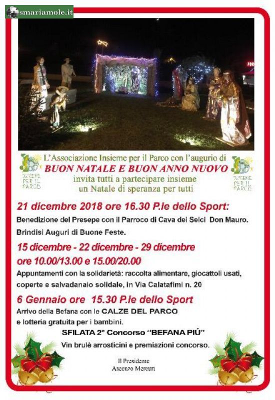 E poi appuntamento a domenica 6 gennaio dalle 15,30 al Piazzale dello Sport con tante iniziative. Arriverà la Befana con le Calze del Parco; seguirà la lotteria gratuita per i bambini e la seconda edizione del concorso “Befana Più”, ovvero la sfilata per individuare la befana più bella, con tanti ricchi premi.