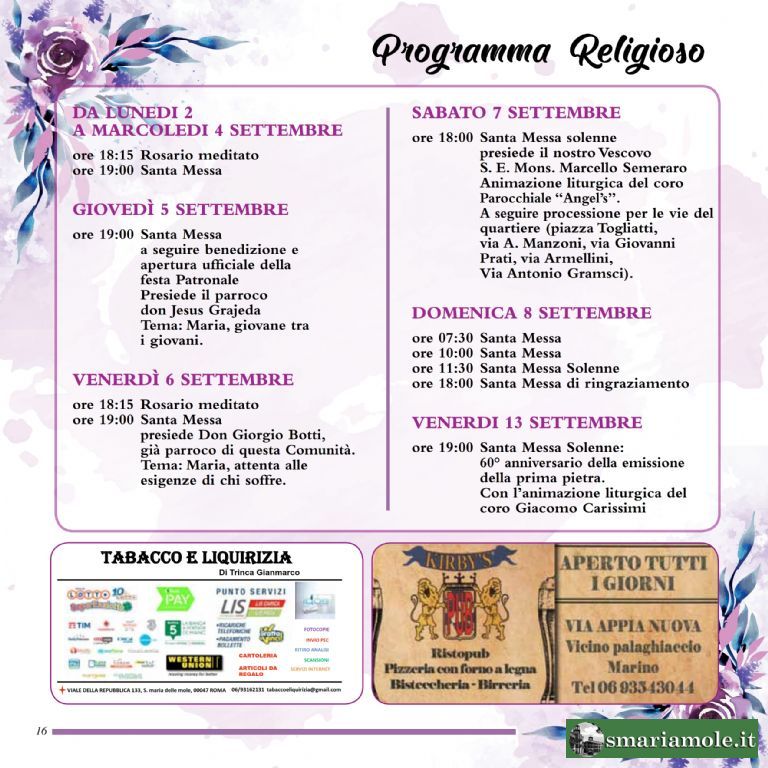 S. Maria delle Mole: Programma generale Festa patronale 2019.