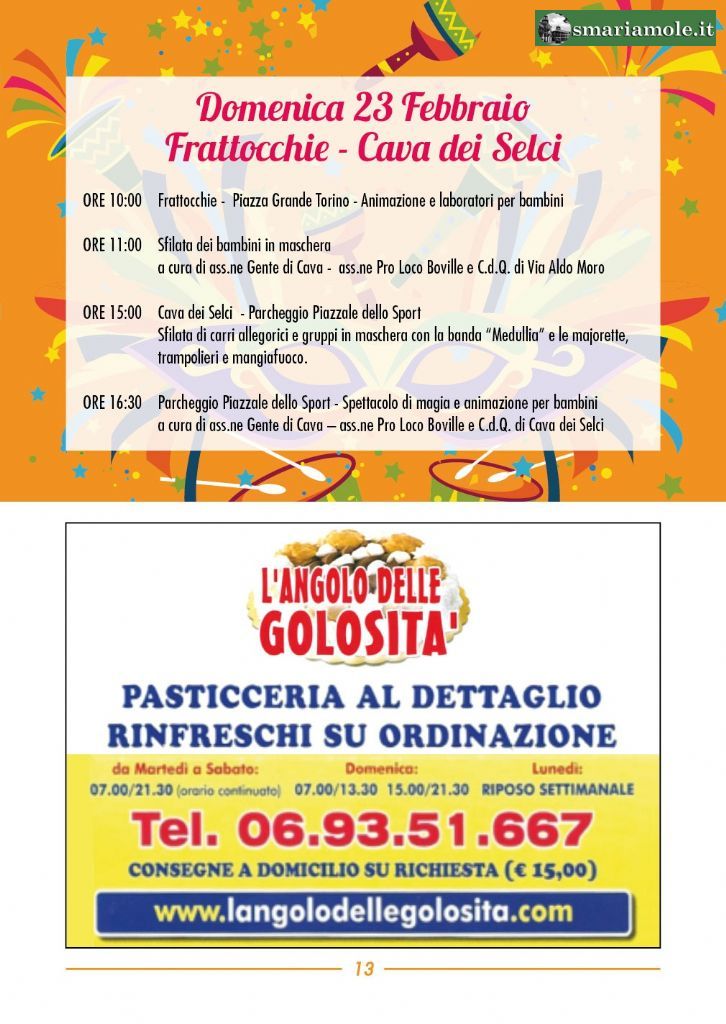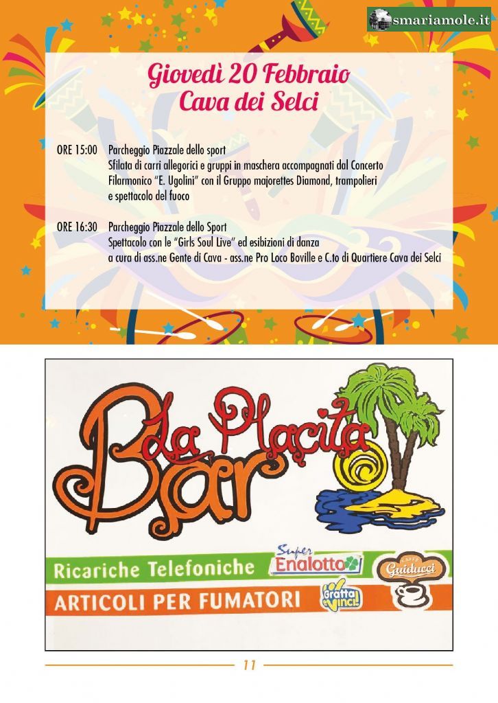 Quest’anno lo schema della manifestazione è quello ormai consolidato nello scorso anno, con una serie di sfilate di carri allegorici che coloreranno le strade di Cava, di Santa Maria e di Frattocchie.