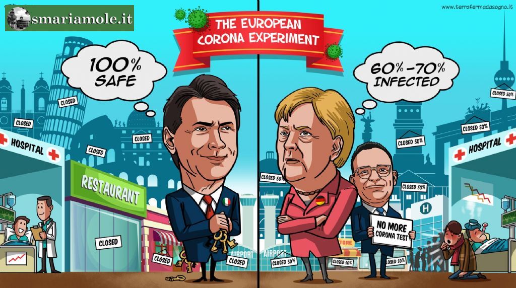 Oggi vi proponiamo una vignetta realizzata da Terraferma Da Sogno (Terrafermadasogno.it) con l'intenzione di sensibilizzare l'opinione pubblica circa le importanti differenze in Europa nell'affrontare l'emergenza Coronavirus.
