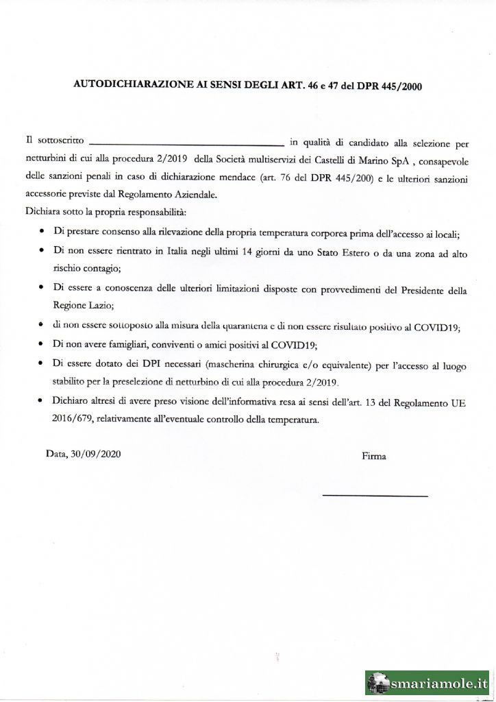 - modello compilato di autocertificazione Covid-19 (vedi allegato).