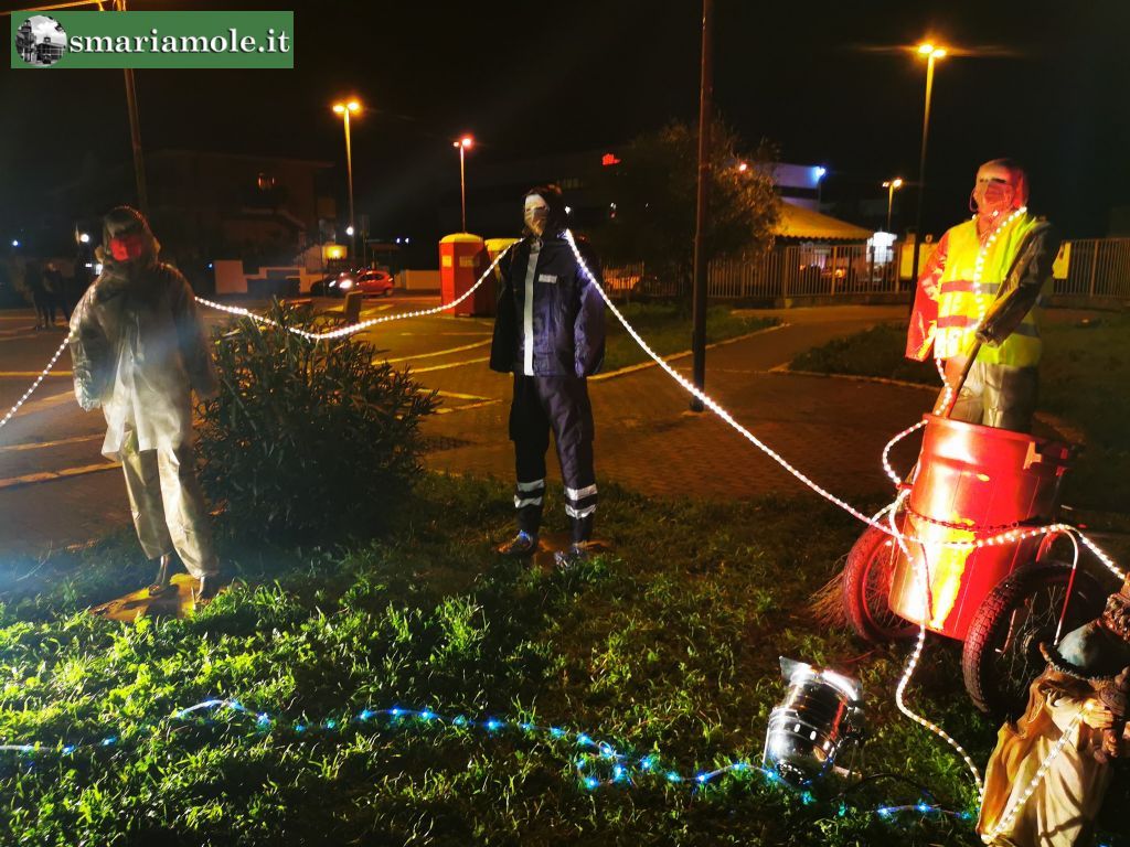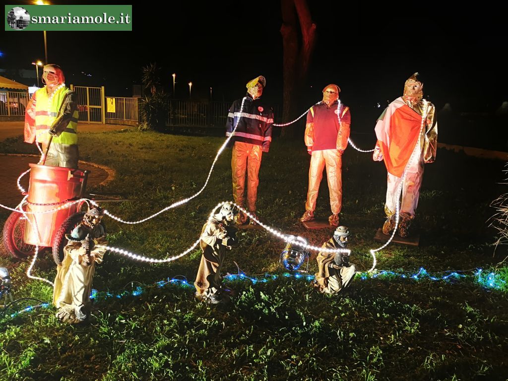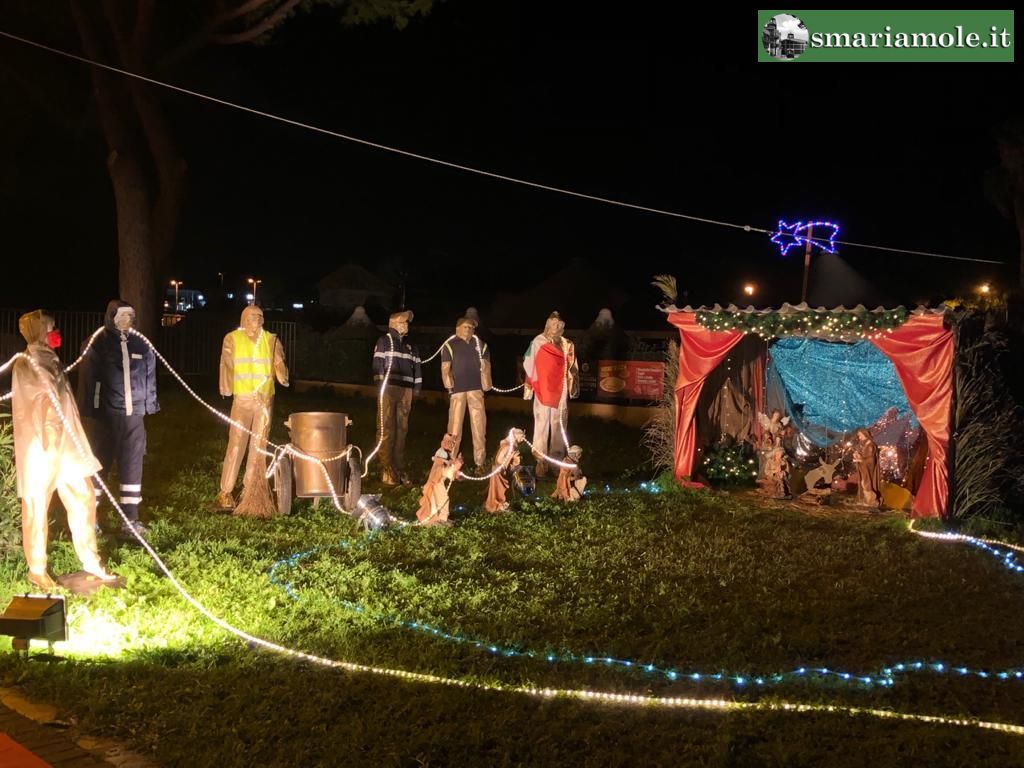 Il Presepe è stato dedicato a “tutti coloro che in prima linea hanno garantito e garantiscono i servizi primari di cura, assistenza, prevenzione, pulizia, generi alimentari, scuola, sì la scuola con i bambini, i nostri piccoli supereroi – ci spiega Franca Silvani, consigliera comunale del Pd di Marino e membro storico dell’Associazione Insieme per il Parco. Insomma, la vita ai tempi del Covid – continua. E così abbiamo pensato di onorare i presidi locali di comparto sanitario, Croce Rossa, Protezione Civile, Polizia Locale, farmacie comunali e operatori di raccolta rifiuti, che, indispensabili e preziosi punti di riferimento di prossimità, non si sono mai fermati e non si fermano. Così come gli approvvigionamenti alimentari, ma anche chi pensa ai nostri bambini nel servizio scolastico.” E così, personaggi apparentemente comuni e del nostro vivere quotidiano entrano a far parte del Presepe: innovazione e tradizione. Non si va contro la tradizione, bensì la si adatta alla contemporaneità e al passaggio cruciale che è in atto.