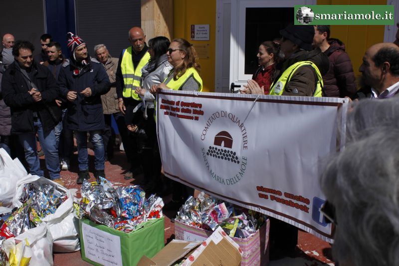 Un’invasione pacifica di 120 persone che vanno a mescolarsi alle altrettante, persone partecipanti alla celebrazione, seguita da un breve saluto di don Savino e dal nostro Comitato, con successiva consegna alla Caritas locale, di una prima parte delle tantissime uova di pasqua raccolte insieme ai tanti prodotti per la cura della persona, gentilmente offerti al nostro Comitato ed alla Parrocchia di Santa Maria delle Mole, dalla multinazionale Johnson e Johnson.