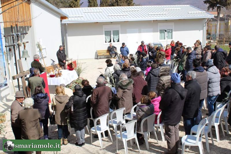 Una fortuna per tutti coloro che partecipano alla messa, celebrata da Don Savino che, con nostra sorpresa, a distanza di 1 anno e mezzo dal sisma, viene celebrata ancora all’aperto.