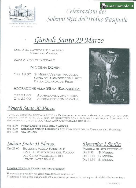 Si parte giovedì 29 marzo con la messa del Crisma presso la Cattedrale di Albano alle 9,30.