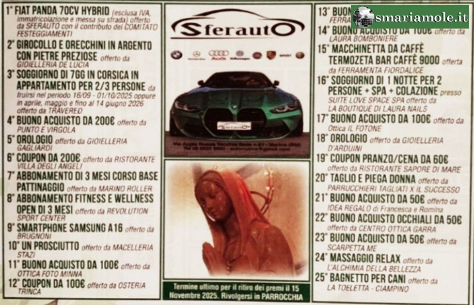 S. Maria delle Mole: Lotteria "La Nostra Festa 2025" - I Numeri Estratti