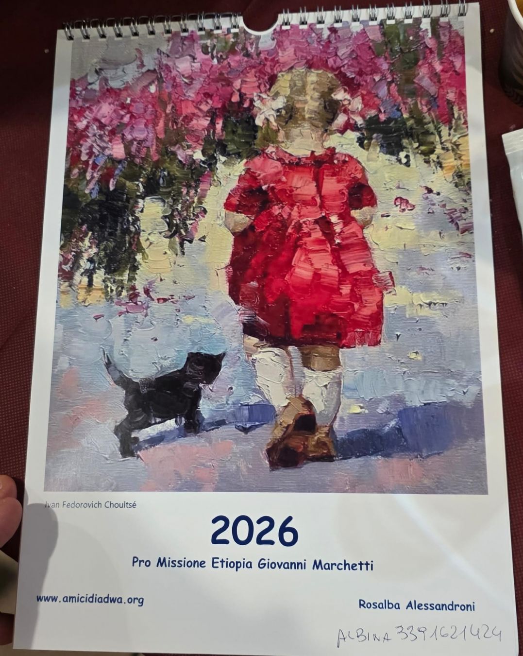 Un’ultima cosa prima di lasciarvi: nelle immagini in fondo a questo articolo abbiamo messo la foto del Calendario 2026 “Pro Missione Etiopia Giovanni Marchetti” realizzato dall’Associazione Amici di Adwa, un’opera deliziosa che ha illustrato la nostra amica Albina insieme all’impegno svolto dall’associazione.